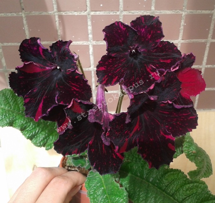 Крупные почти чёрные цветы с красно-бардовым фентези. Очень красивые.Эксклюзивный сорт.